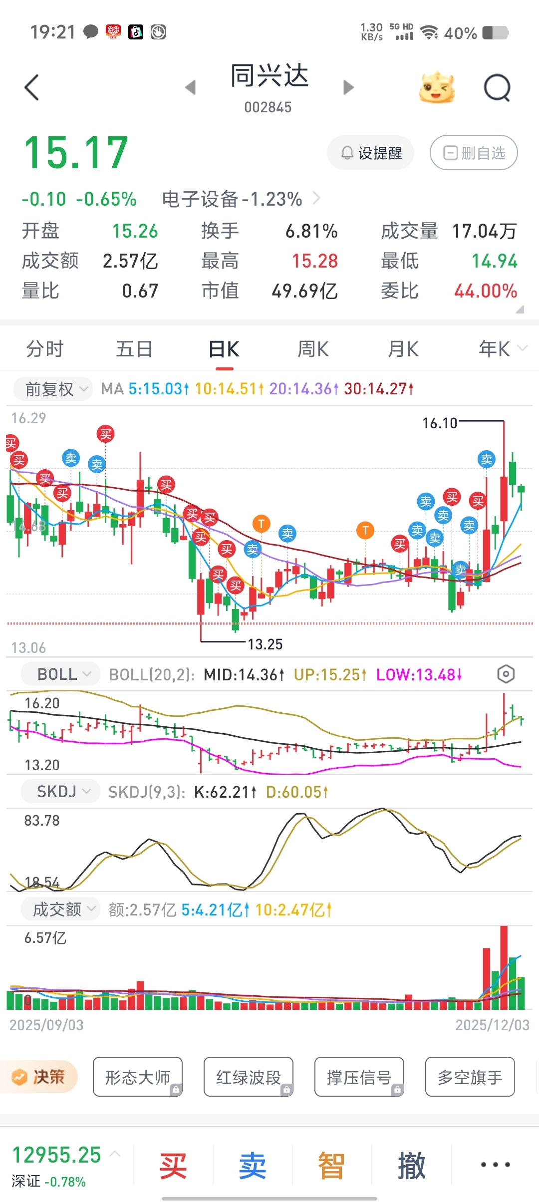 $同兴达(SZ002845)$ 13.5的本。不买也不卖看你表演。跌破成本我就走