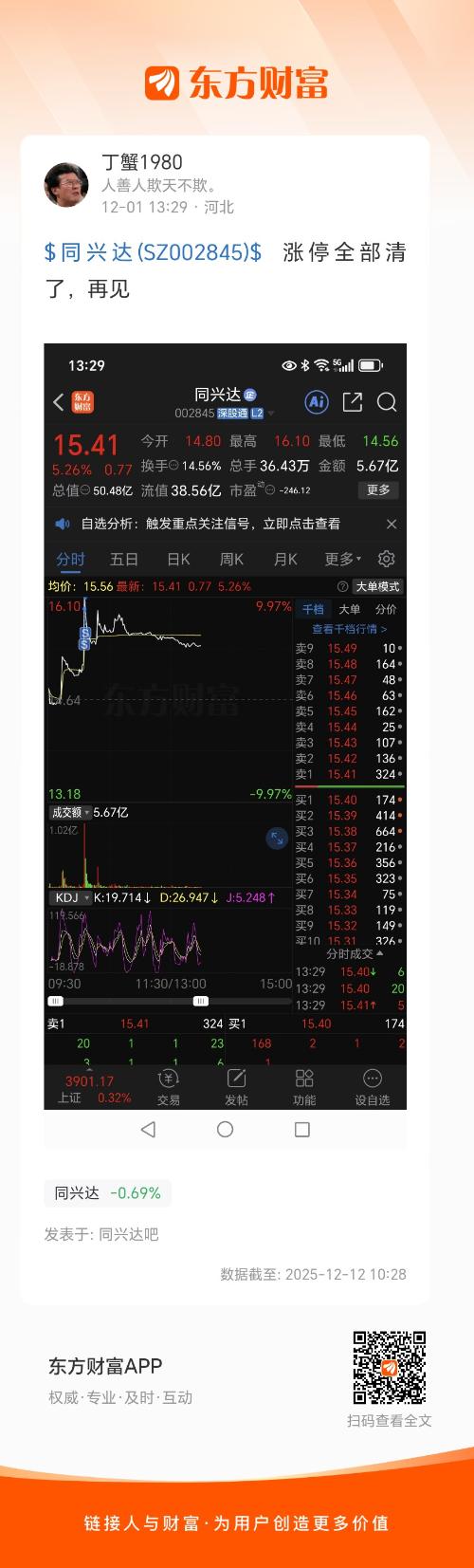 $同兴达(SZ002845)$  涨停全部清了,再见