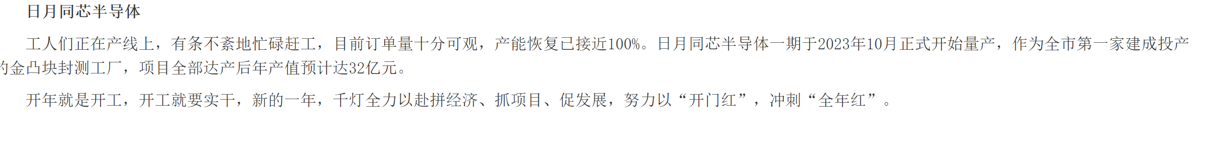 根据2024年昆山政府的网站,子公司日月同芯满产后,年产值预估32亿