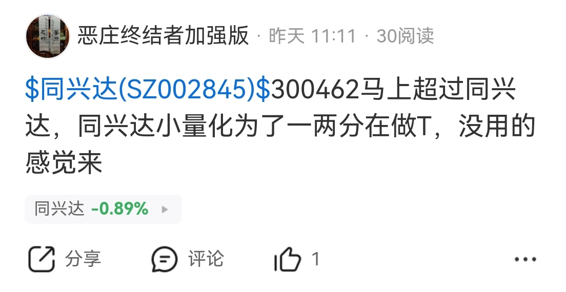 $同兴达(SZ002845)$ 跟着我就算你不割肉也有钱可以死扛同兴达,不被万峰老贼收割,300462牛不牛,哇哈哈哈……