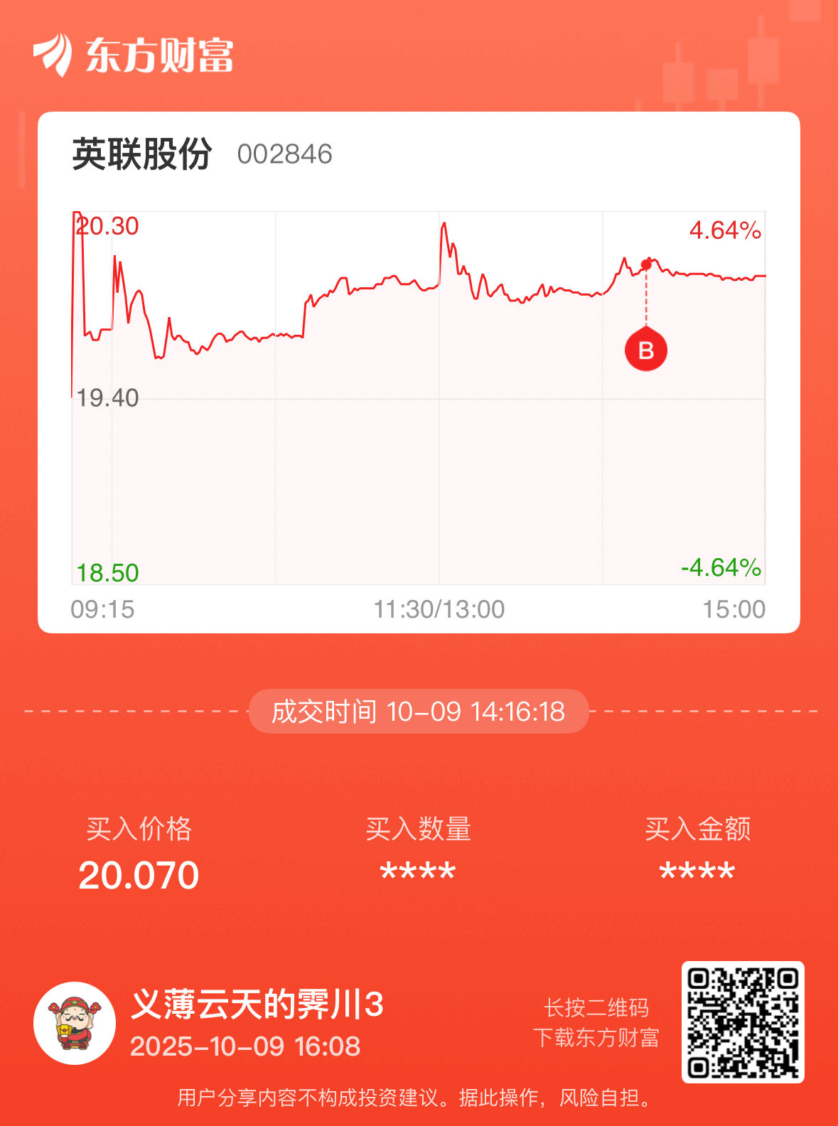 $英联股份(SZ002846)$ 我真的服了,下午那会儿20.7点卖出结果没注意看,点到买入了。然后又把之前的全部清了,相当于赔了手续费还得接受明天不确定的风险