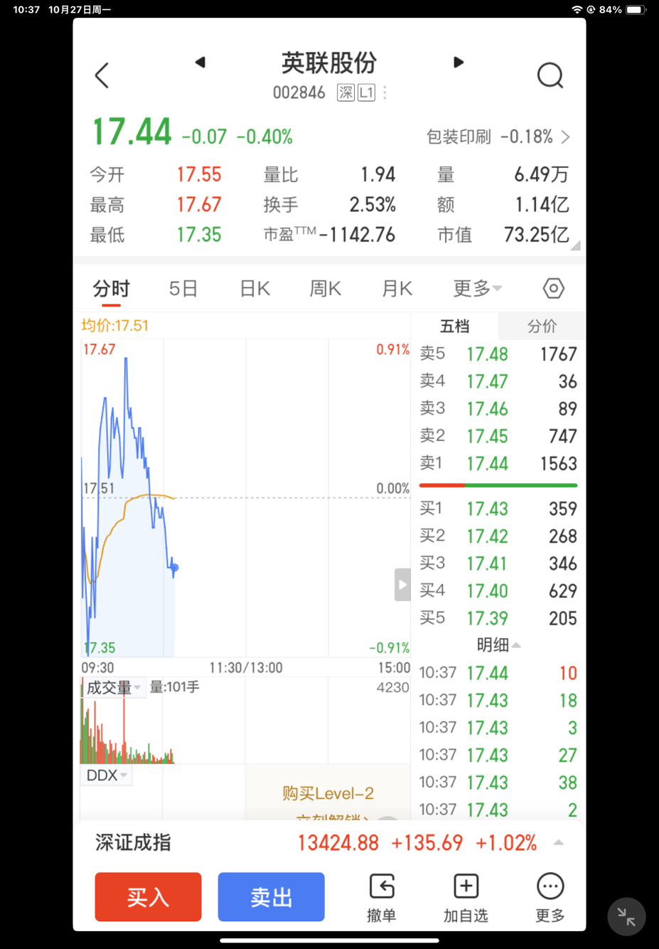 今天杀的还是狠呢,幅度这么大就差三分钱,就是不让走