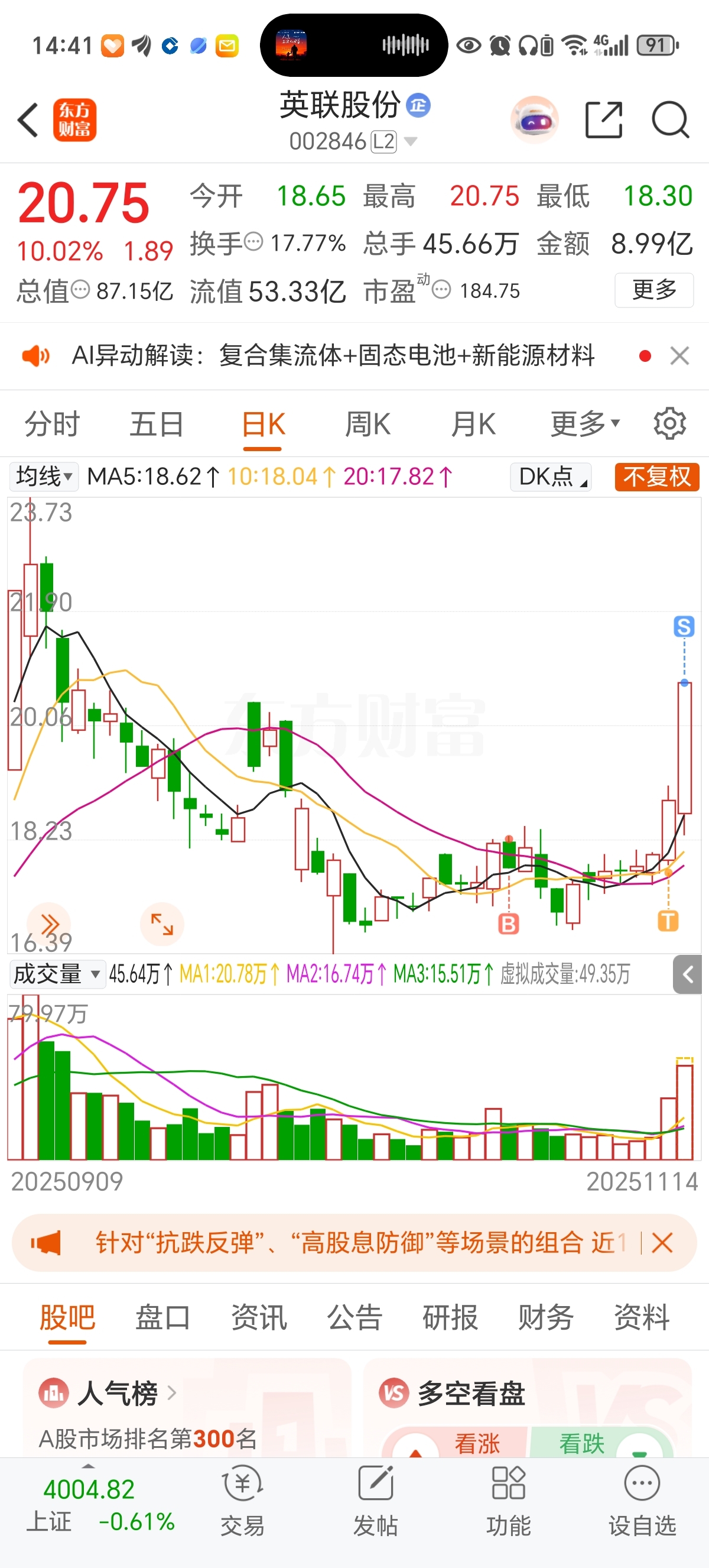 $英联股份(SZ002846)$ 快跑,明天闷杀