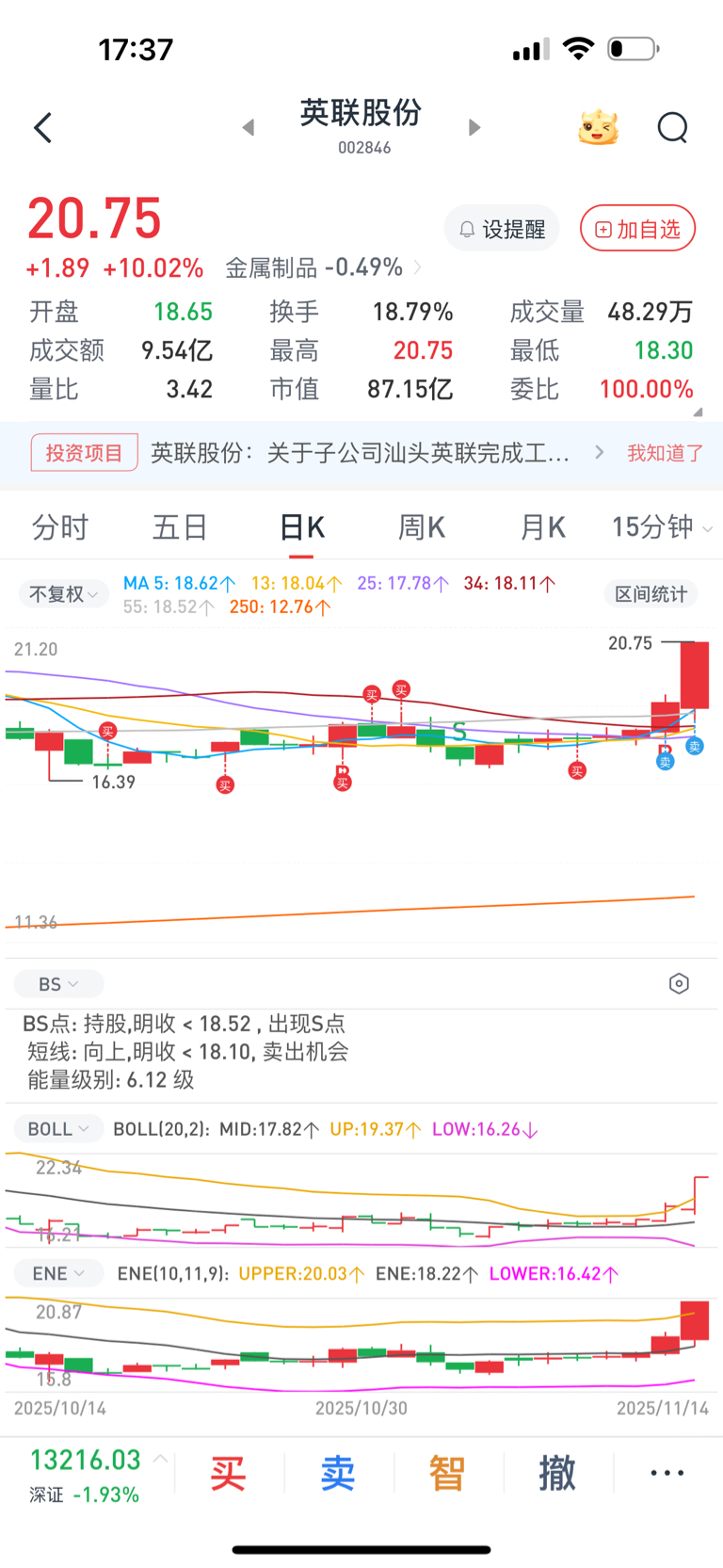 $英联股份(SZ002846)$ 今天总算收获满满!目标前高。