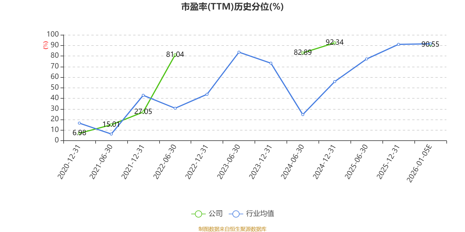 以本次披露业绩预告均值计算,公司近年市盈率(TTM)图如下所示: