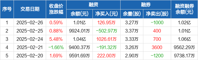 盐津铺子:融资净买入126.95万元,融资余额1.01亿元(02-26)