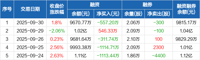 盐津铺子:融资净偿还557.2万元,融资余额9670.77万元(09-30)