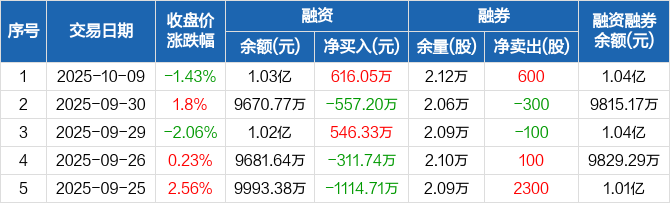 盐津铺子:融资净买入616.05万元,融资余额1.03亿元(10-09)