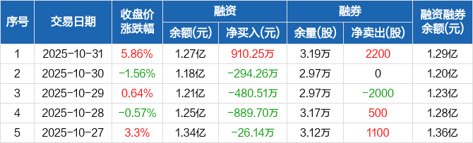 盐津铺子:融资净买入910.25万元,融资余额1.27亿元(10-31)