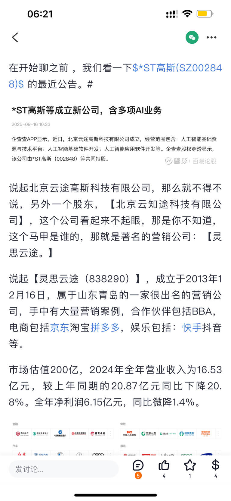$*ST高斯(SZ002848)$ 灵思云途借壳,预期一步一步实现,200亿估值,都是山东企业