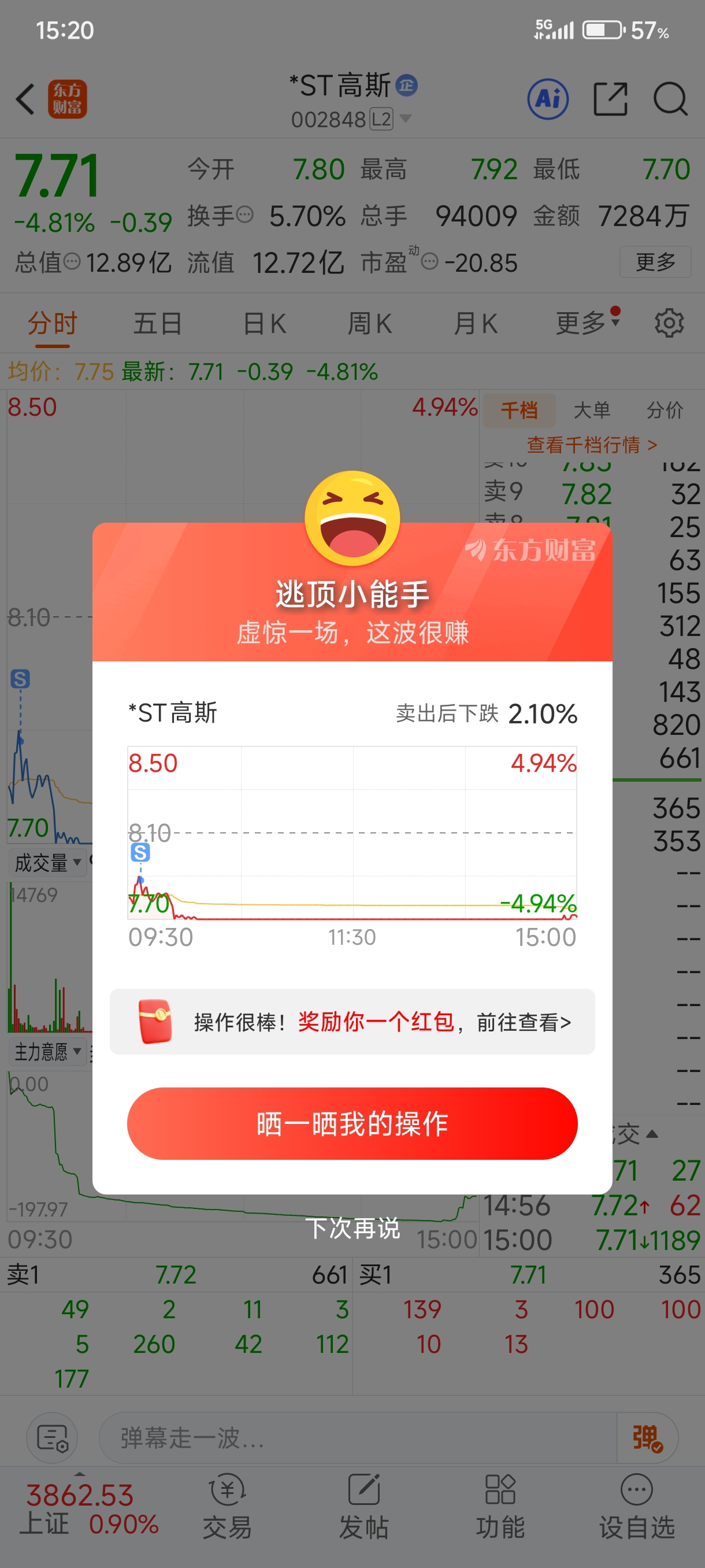 $*ST高斯(SZ002848)$ 亏麻了割肉了还说我是逃顶小能手,我真想