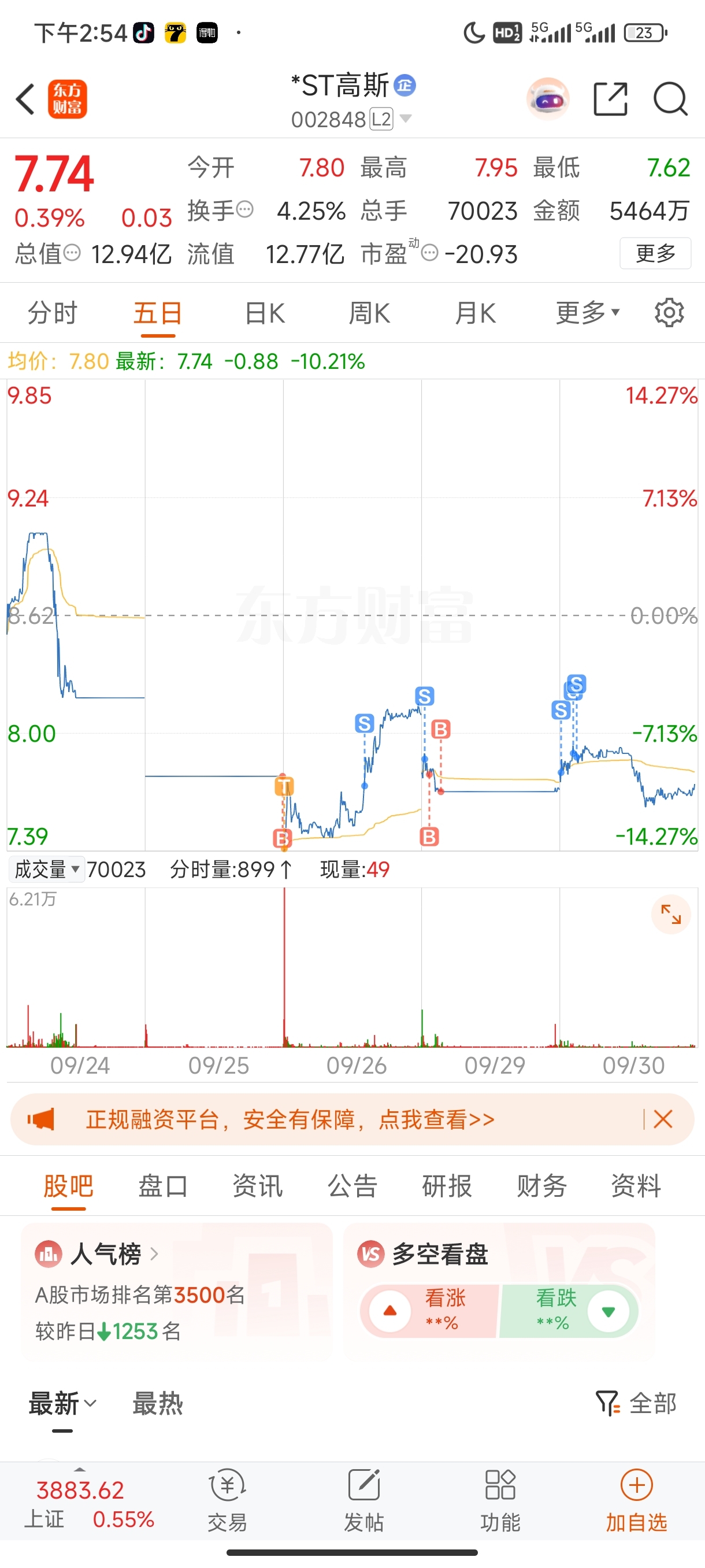 $*ST高斯(SZ002848)$ 再见了,主力控得太死了。不跟你玩了。