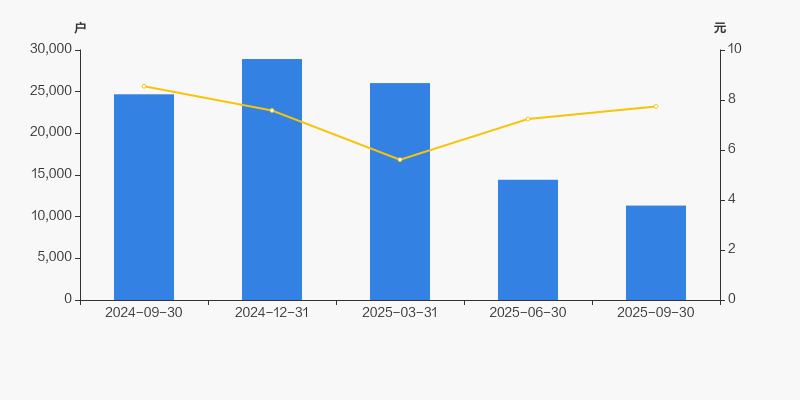 自2024年12月31日以来,公司股东户数连续3期下降,截至目前减幅为60.82%。2024年12月31日至2025年9月30日区间股价上涨2.11%。