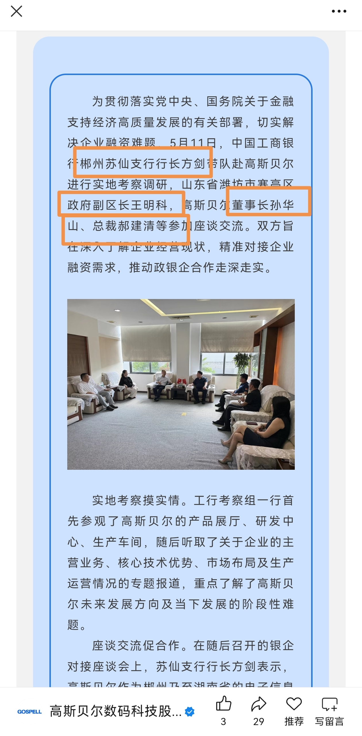 $*ST高斯(SZ002848)$ 利好来了,副区长挂帅,董事长总经理都在,保壳不担心,满仓满融干