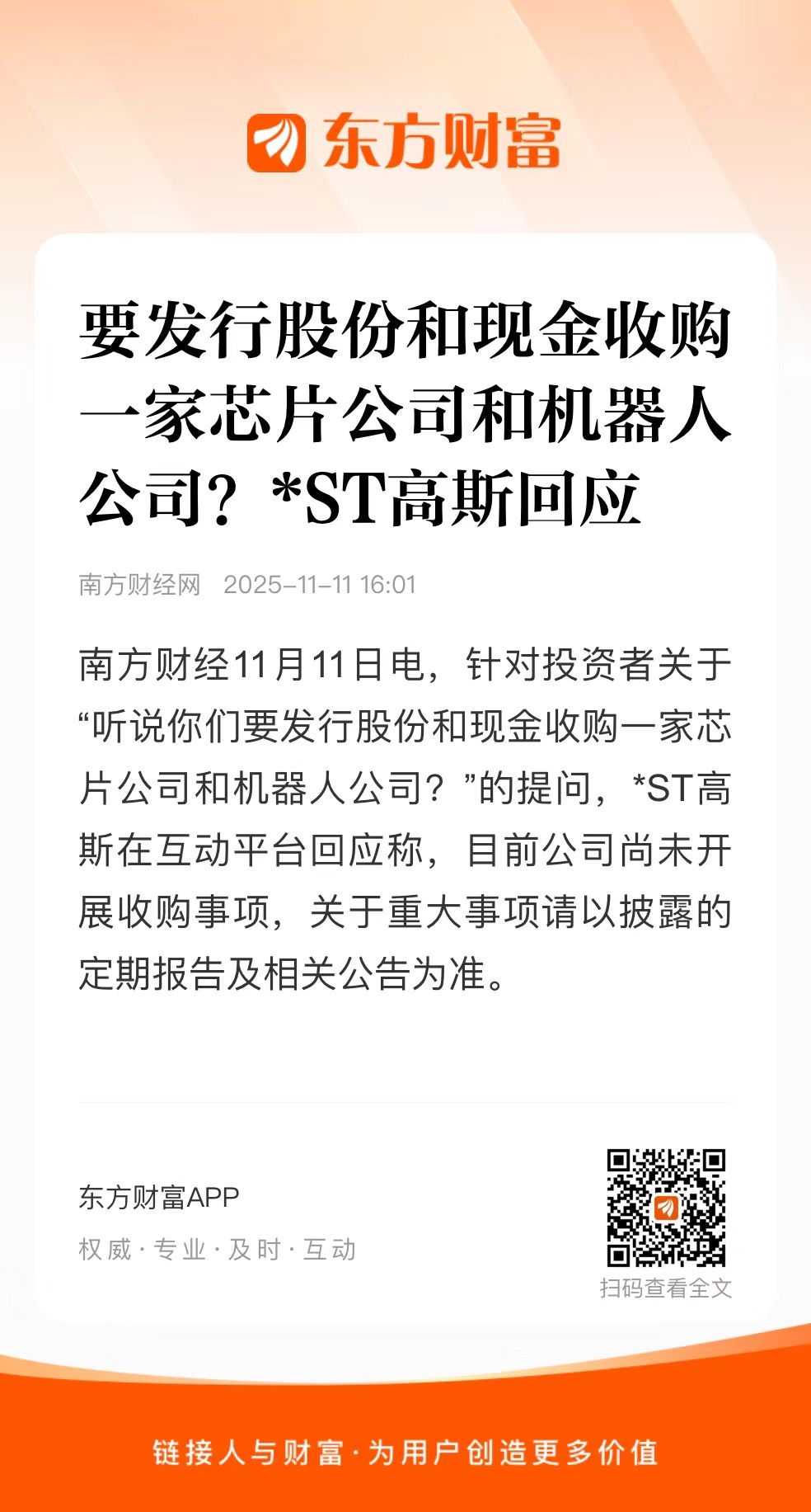 那个:疯~子11号忽悠投资人说ST高斯的发行股票现金收购一个机器人公司和芯片公司