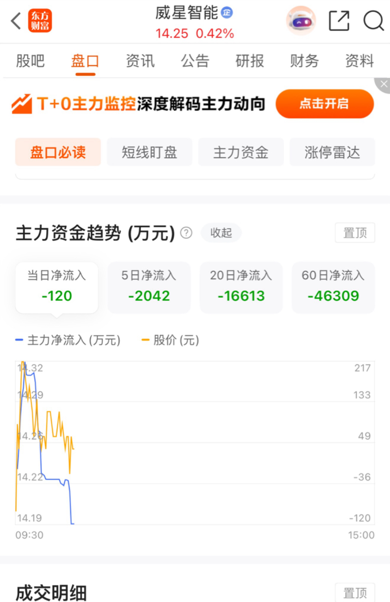 $威星智能(SZ002849)$ 每天稳定的流出。里面全是散户。不跑等什么。