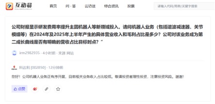 科达利:公司机器人业务正有序开展 目前相关业务收入占比较低