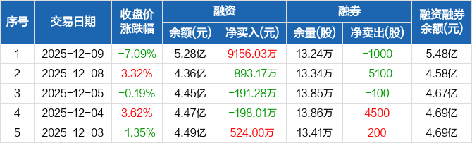科达利:融资净买入9156.03万元,融资余额5.28亿元(12-09)