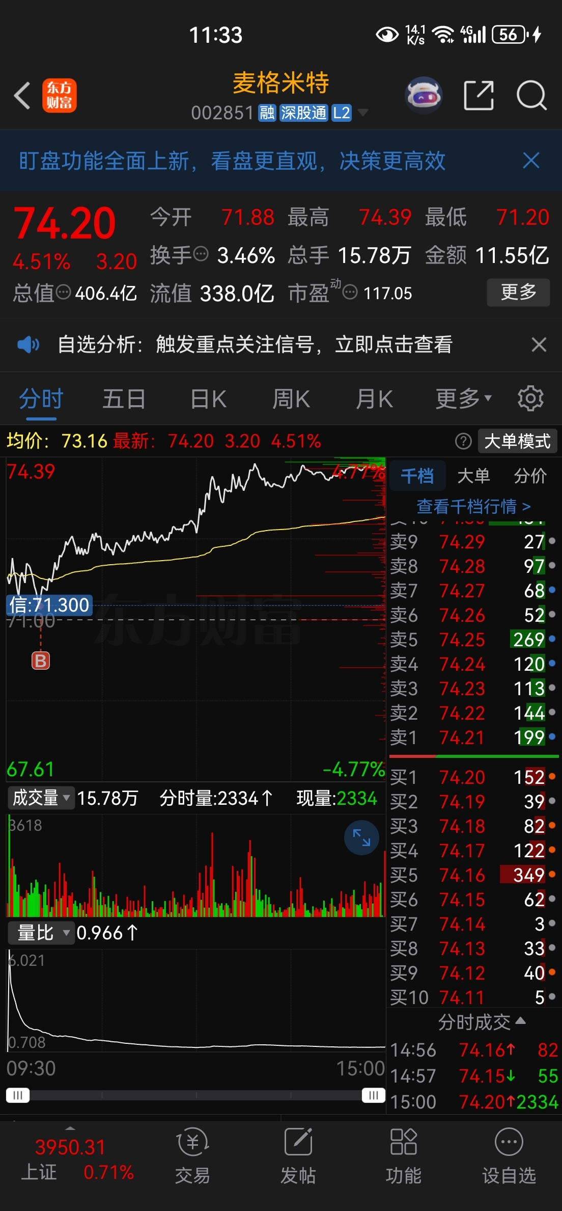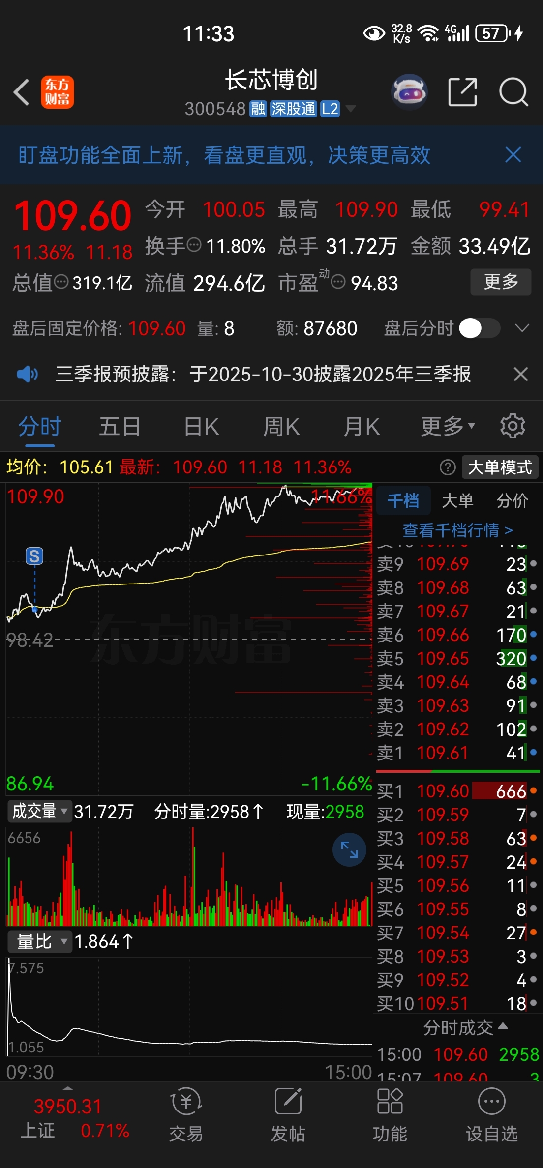 进来就赚了4%,但是我一点也不开心,你猜为什么?因为是拿长芯博创换的,长芯博创少