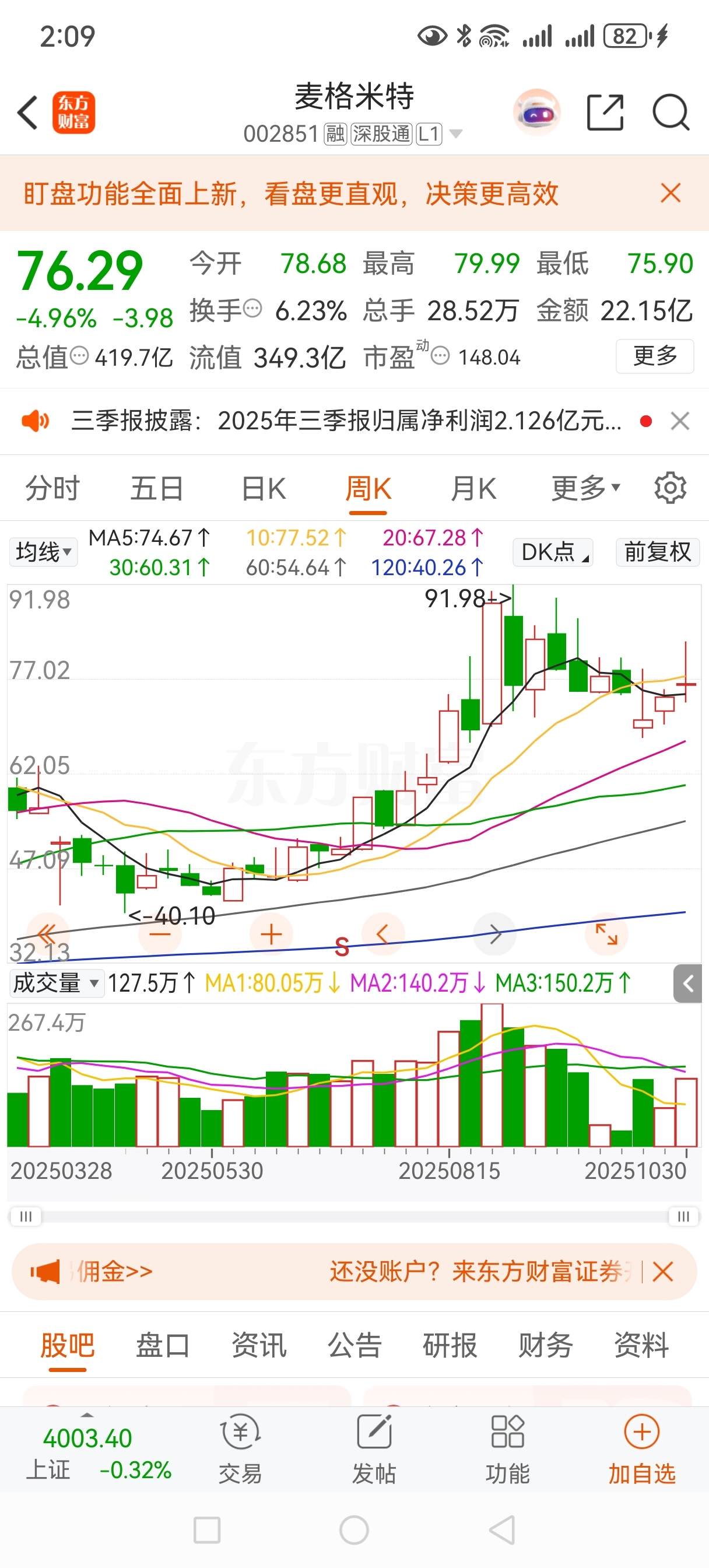 $麦格米特(SZ002851)$ 就这周线放量长上影线,还喊着让你们买的,真的可以问候它家人了,那是真无德。一两周都不一定能调整好。