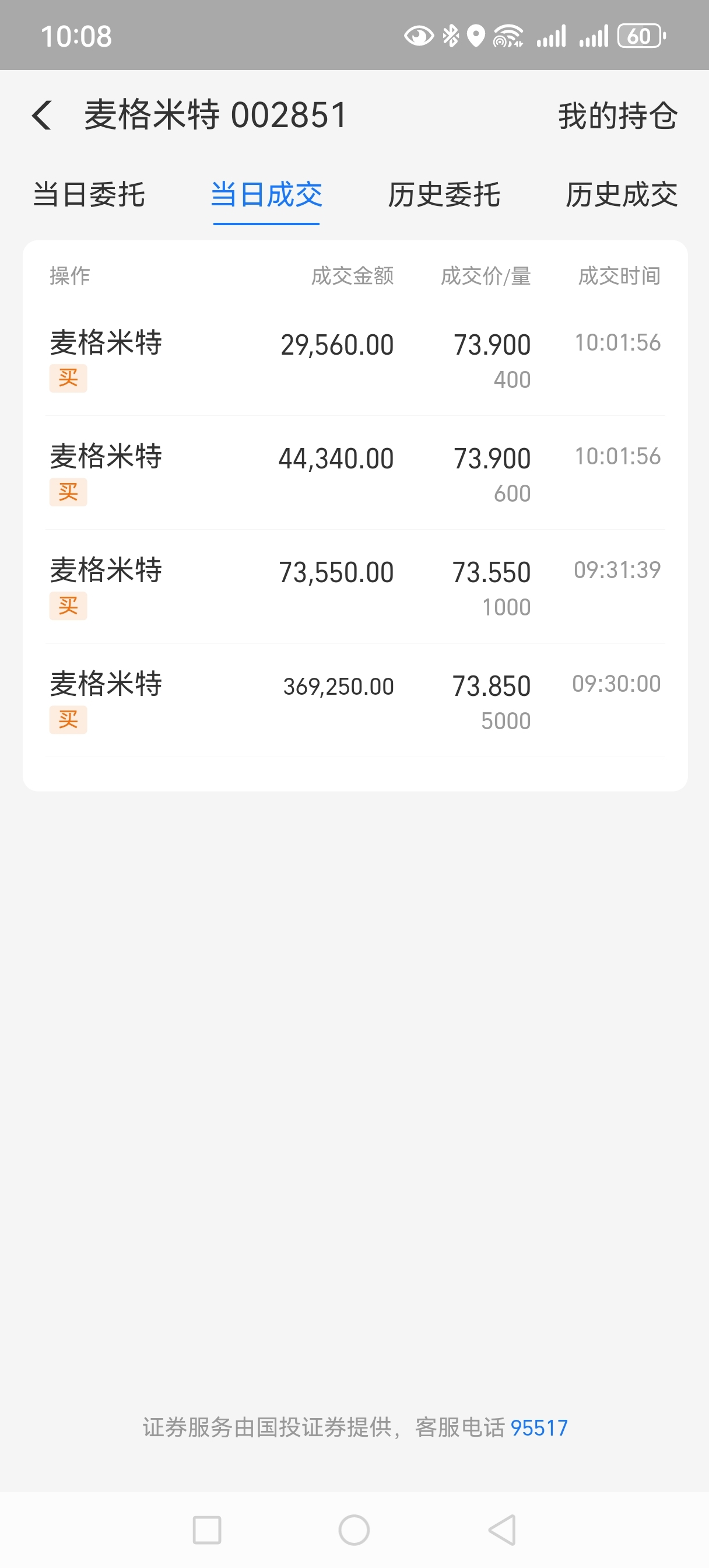 $麦格米特(SZ002851)$ 建个底仓,跌到60多打满。