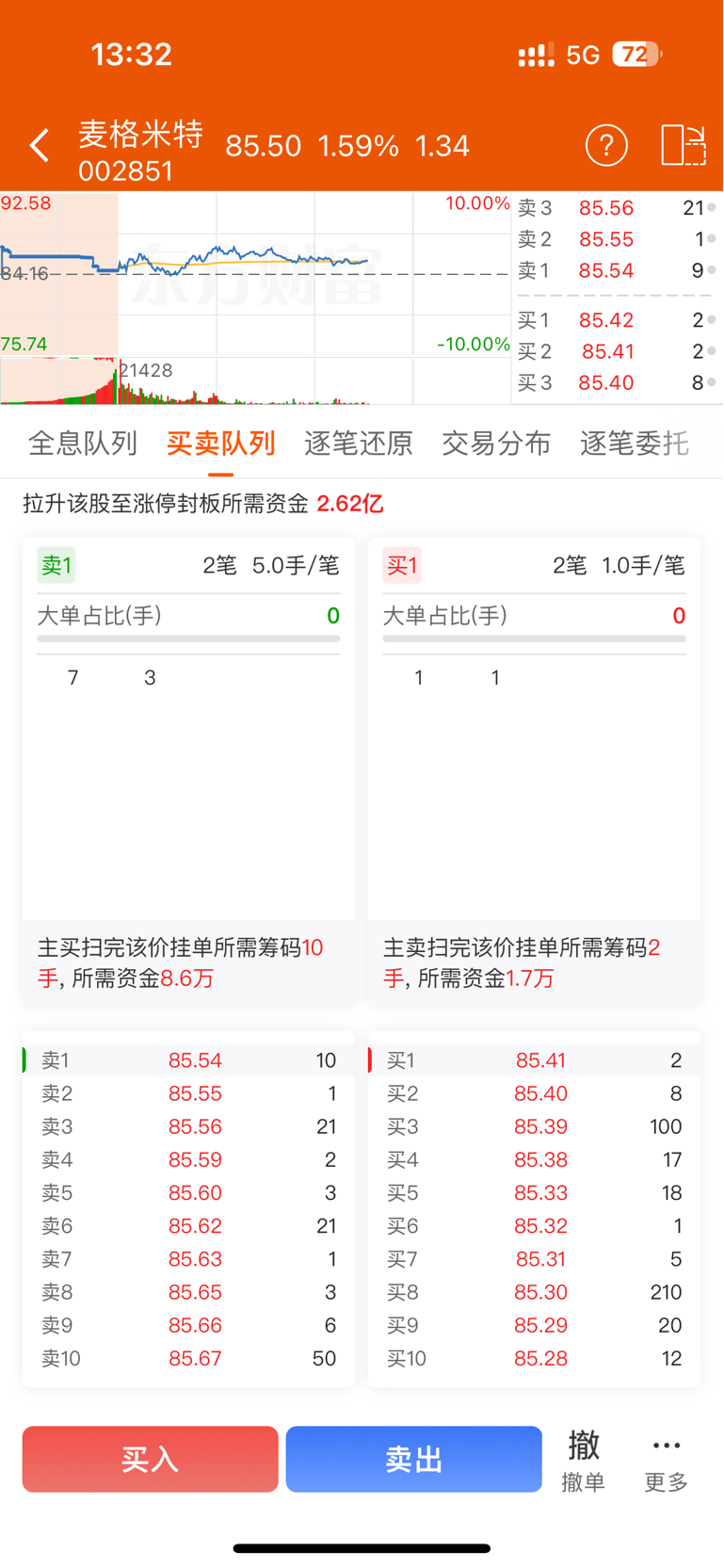 $麦格米特(SZ002851)$ 2.6亿主力,希望我回来你已经拉涨停了