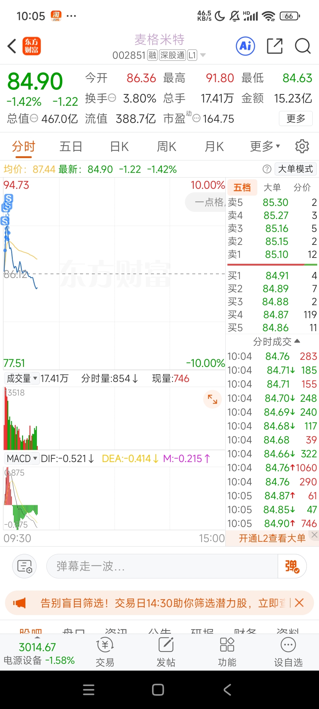 $麦格米特(SZ002851)$ 平均89走的 ,明天78.8能买回来吗