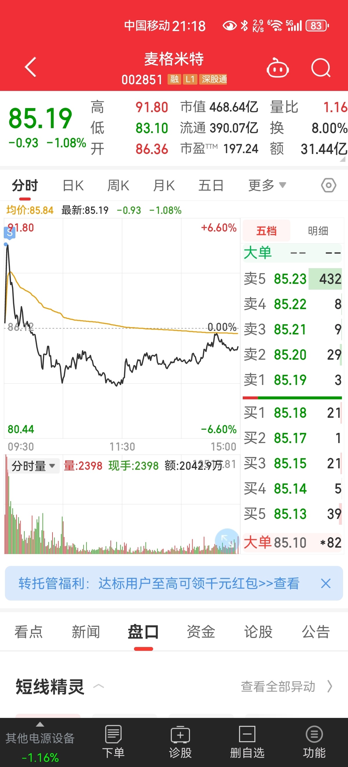 $麦格米特(SZ002851)$ 明天涨不涨不重要,今天精准逃顶
