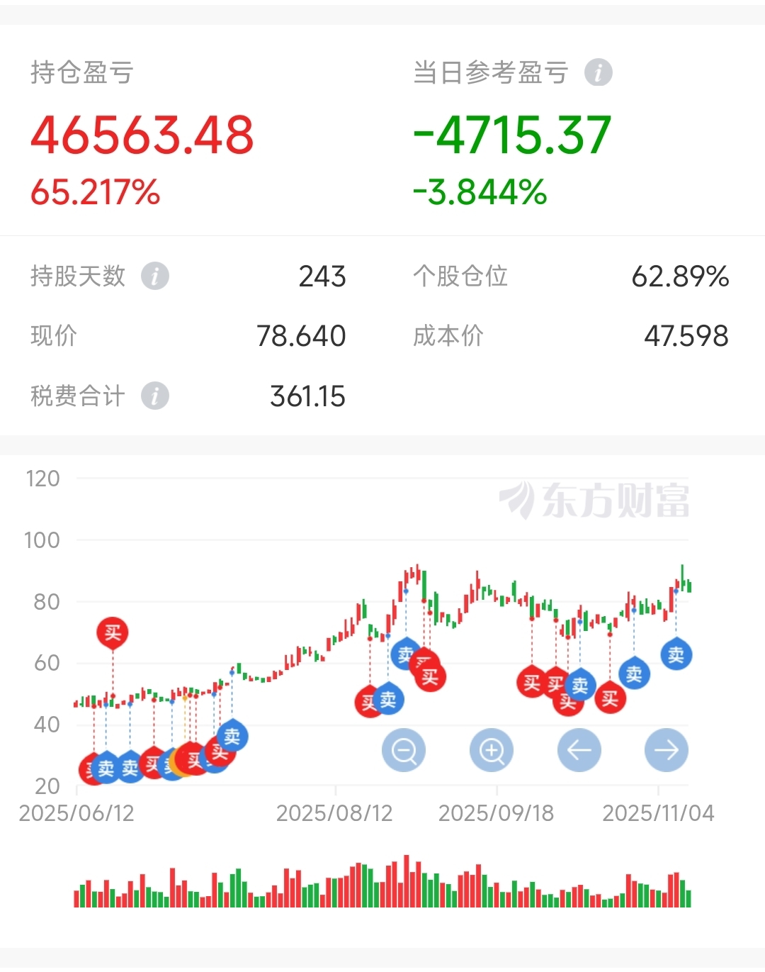 $麦格米特(SZ002851)$ 不懂技术,大阴线我就买点,大阳线我就卖点,最多2000股,最少500股,今天加了点,1500股了
