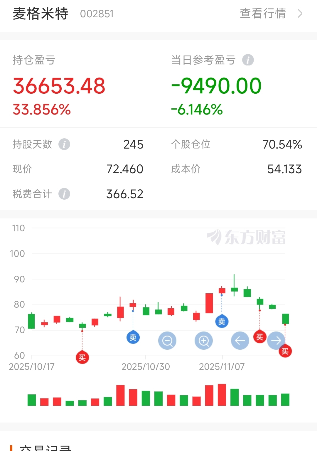 $麦格米特(SZ002851)$ 一周干没一小半利润 。2000股了,没钱了,最多在补500股。