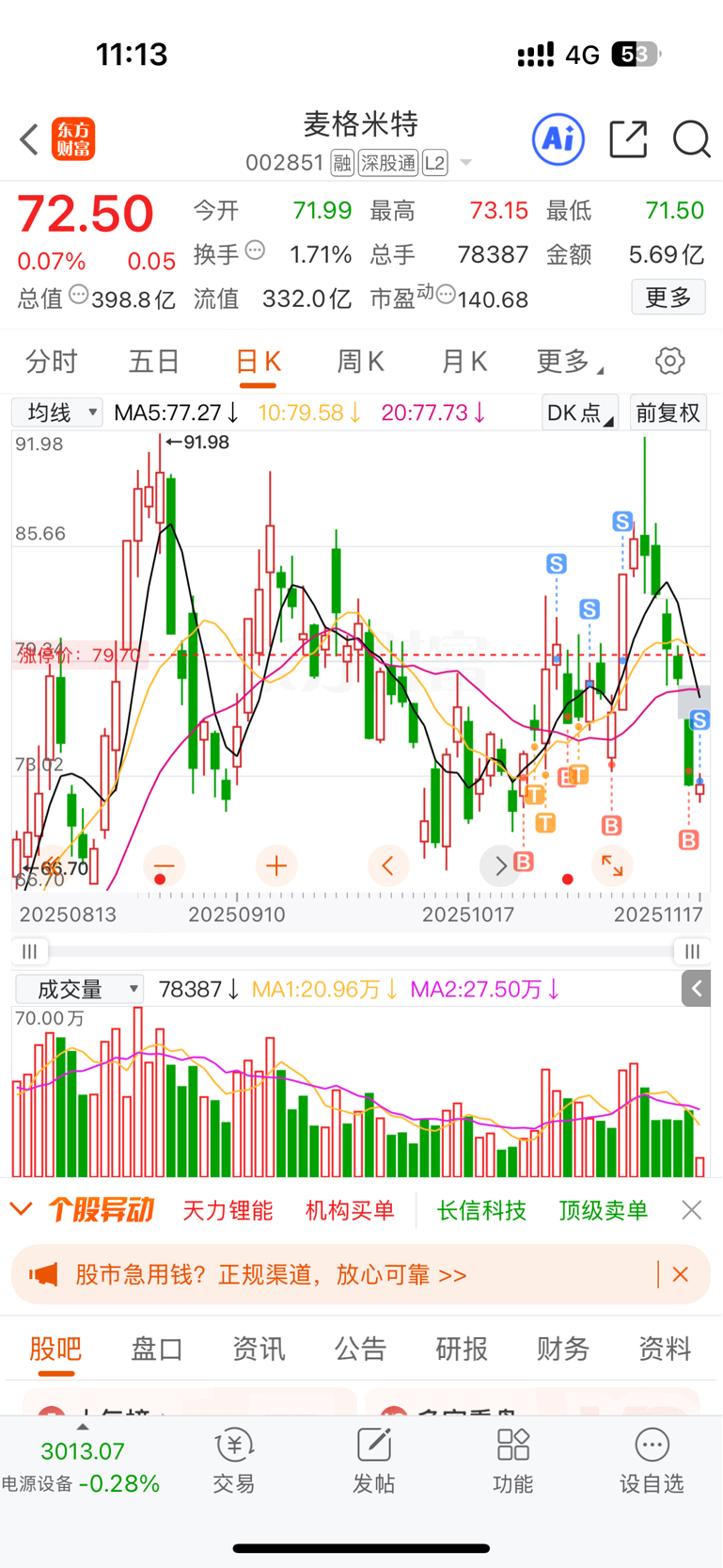$麦格米特(SZ002851)$ 走势不对,撤退。