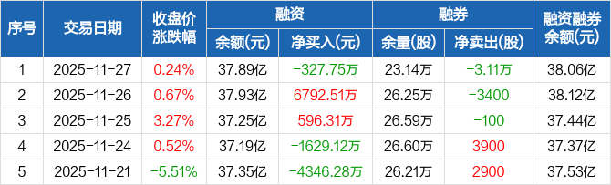 麦格米特:融资净偿还327.75万元,融资余额37.89亿元(11-27)