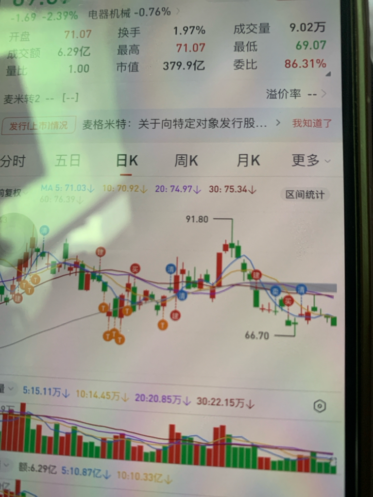 $麦格米特(SZ002851)$ 来20日线,立马怼你,增发只为扩产,看多