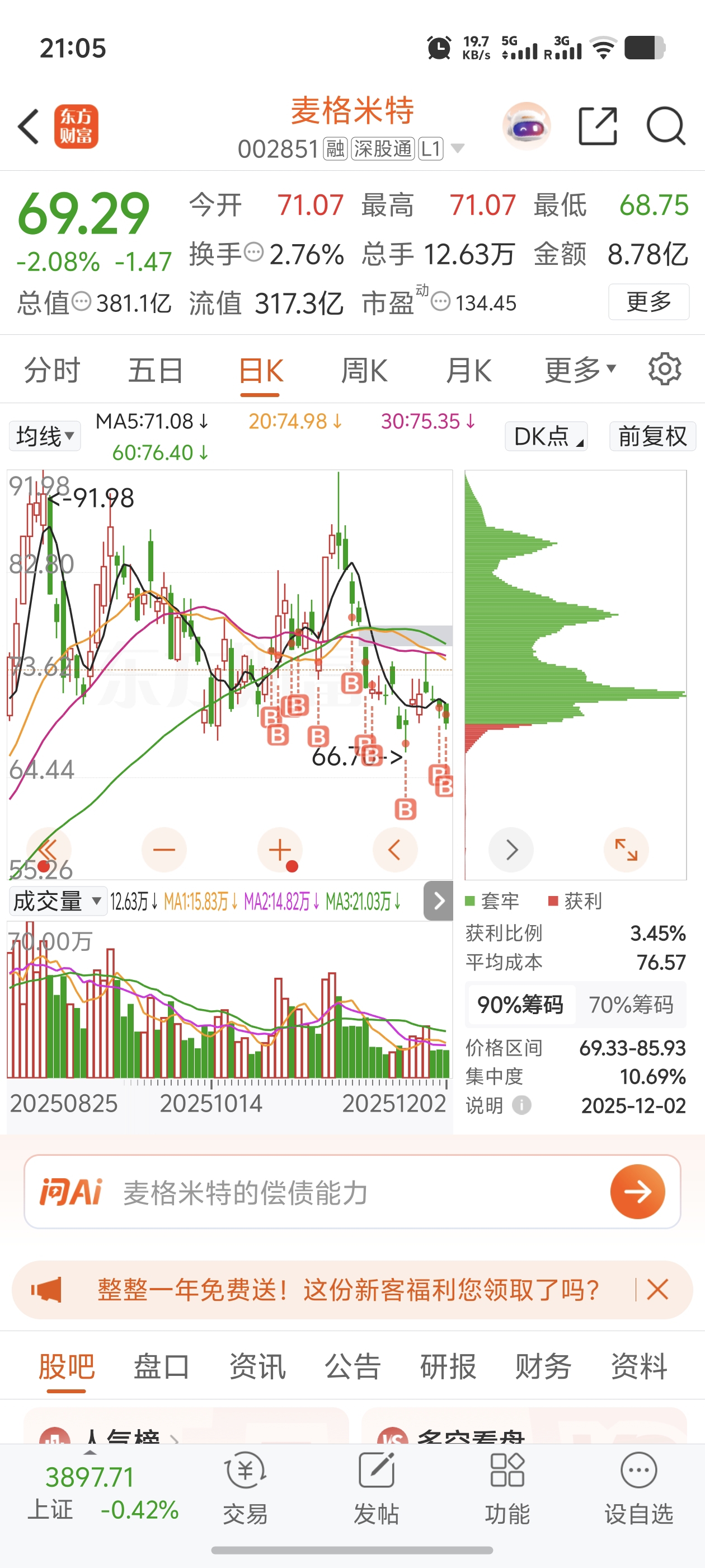 $麦格米特(SZ002851)$ 除非让我赚十个点,不然不走,硬刚