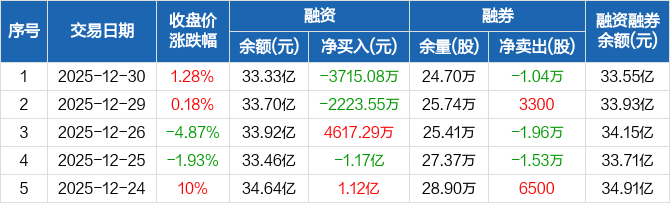 麦格米特:融资净偿还3715.08万元,融资余额33.33亿元(12-30)