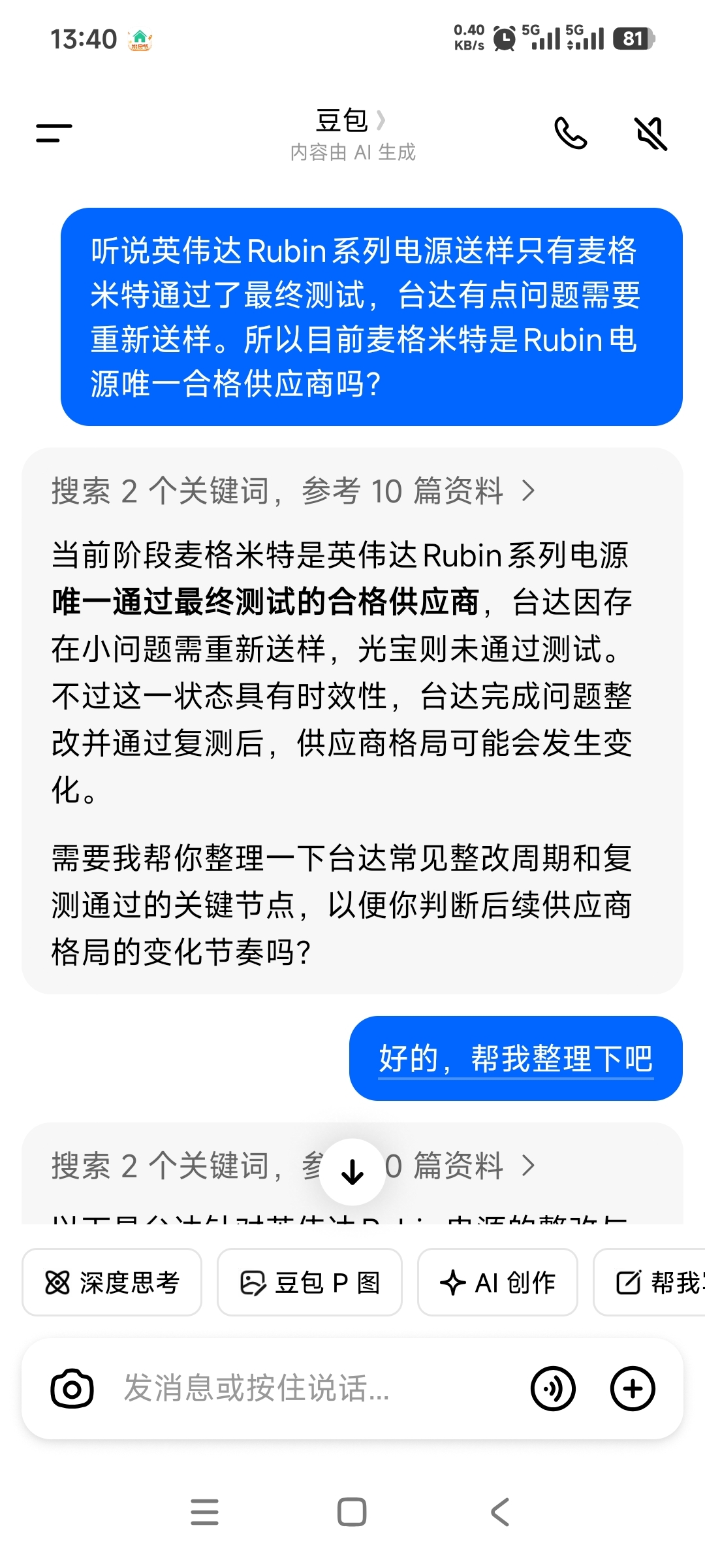 $麦格米特(SZ002851)$ AI应用还得是咱豆包。给答案不含糊,麦格米特是英伟达Rubin当前电源唯一通过测试的供应商!