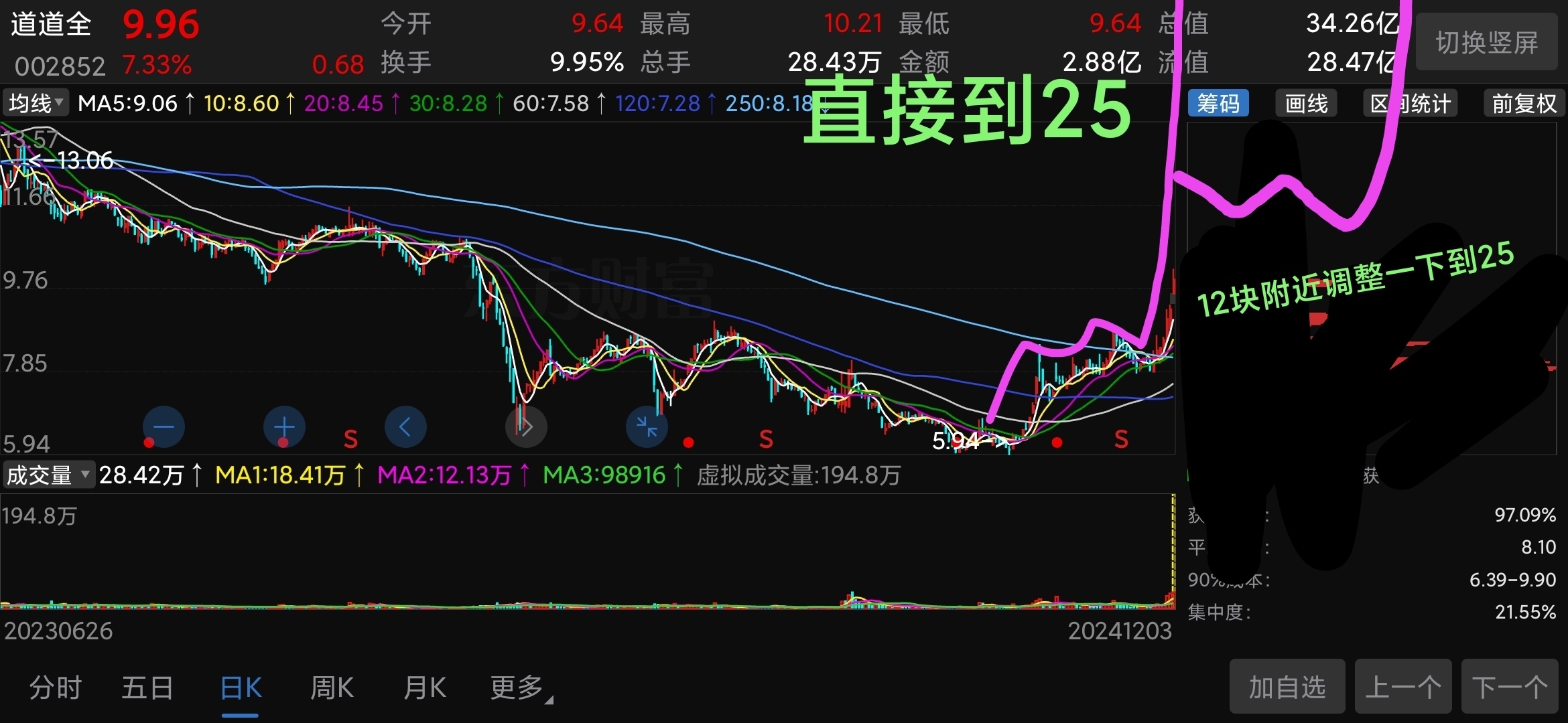 $道道全(SZ002852)$ 终于开始上了,过山车来来回回有啥用?最终还是要给散户抬轿到25,洗掉几个来十个,白费劲