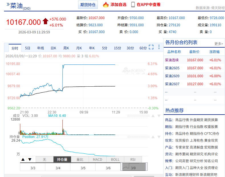 郑州商品交易所菜油期货都涨停了,道道全还不死不活在低位