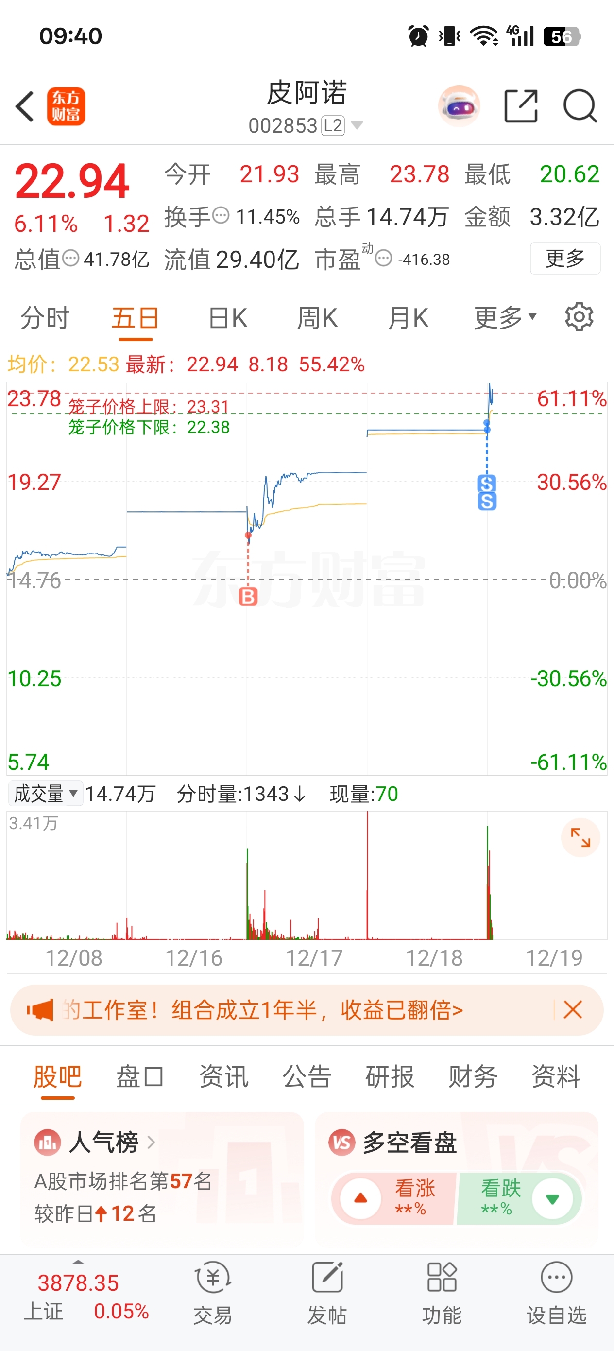 $皮阿诺(SZ002853)$ 三天30个点知足了
