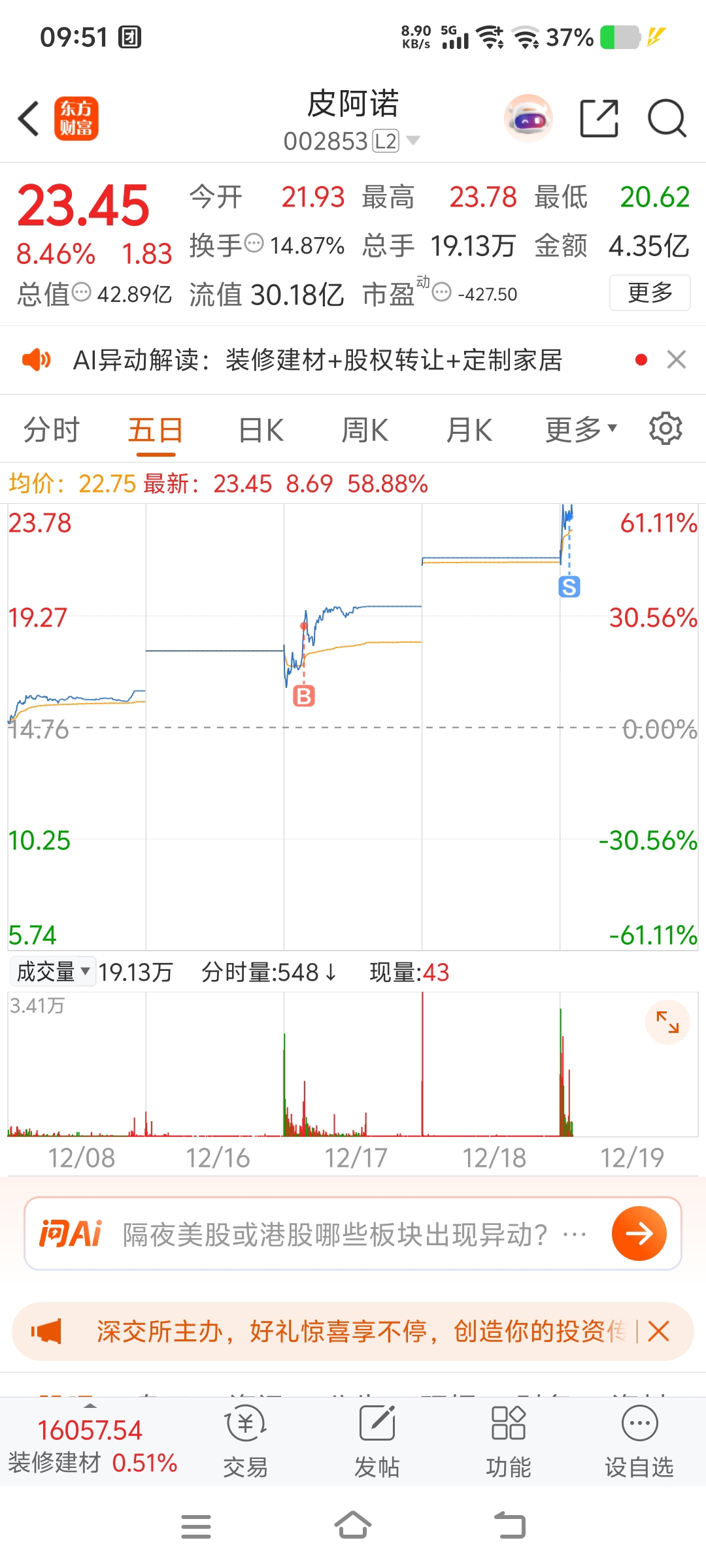 $皮阿诺(SZ002853)$ 拿不住了