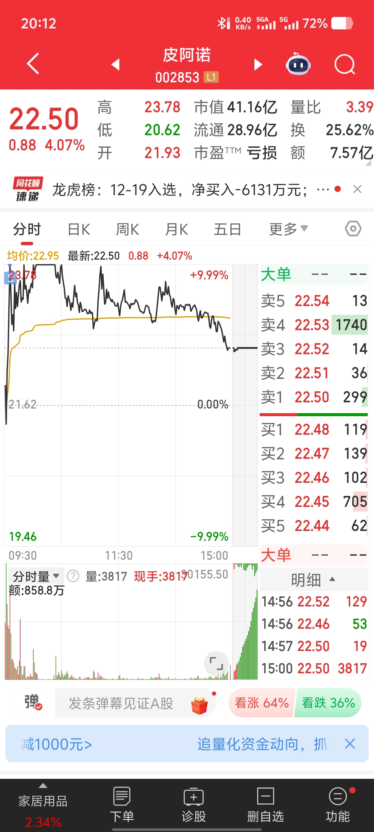 $皮阿诺(SZ002853)$ 带量上板,而且封板不坚决果断卖了