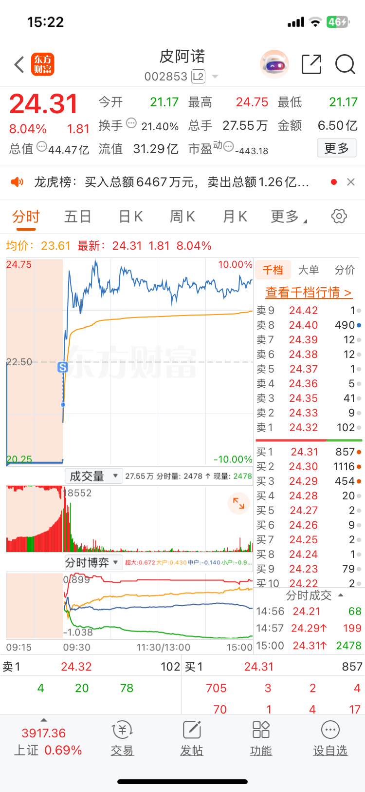 $皮阿诺(SZ002853)$ 垃圾股。一买就跌,一卖就爆拉。气死我了!
