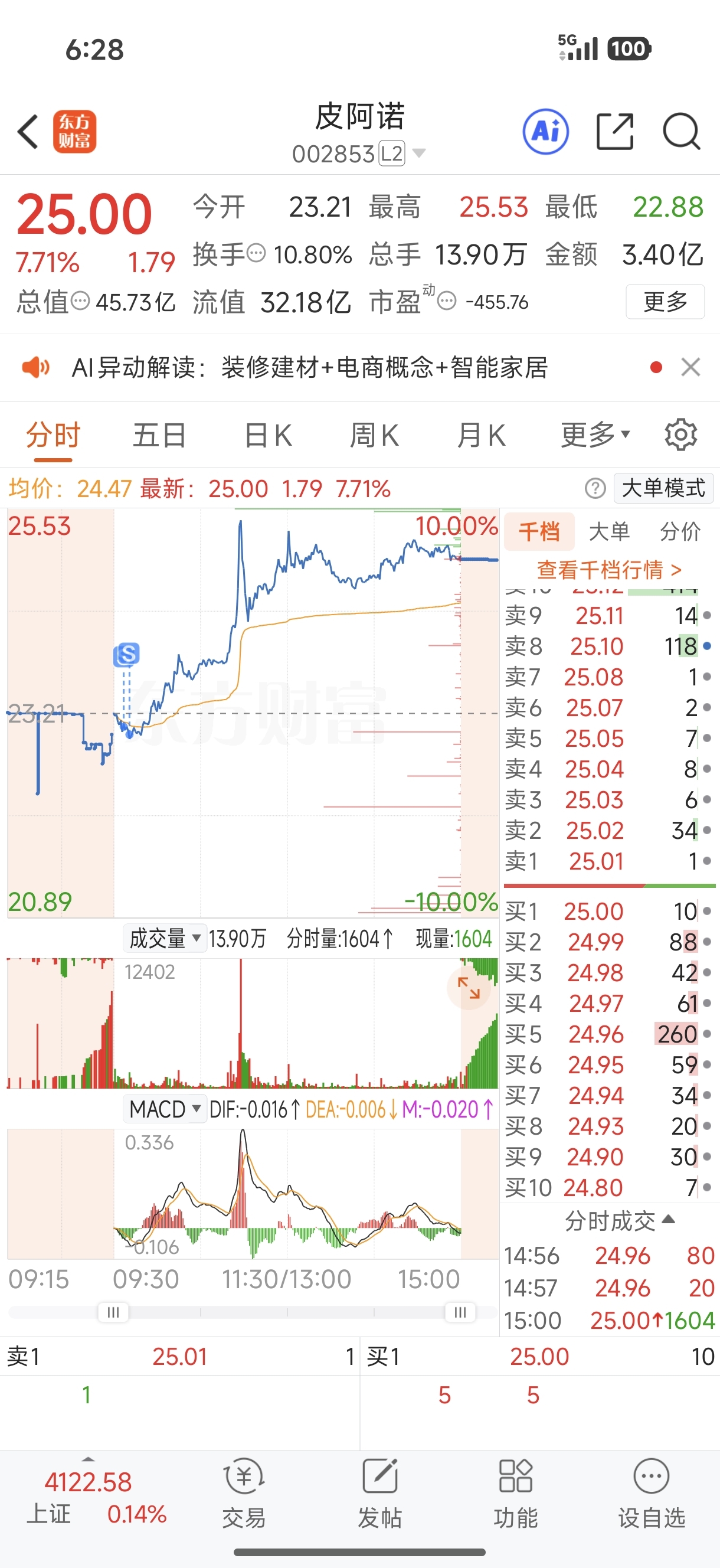 $皮阿诺(SZ002853)$ 本来该模的,结果被我自己搞飞了