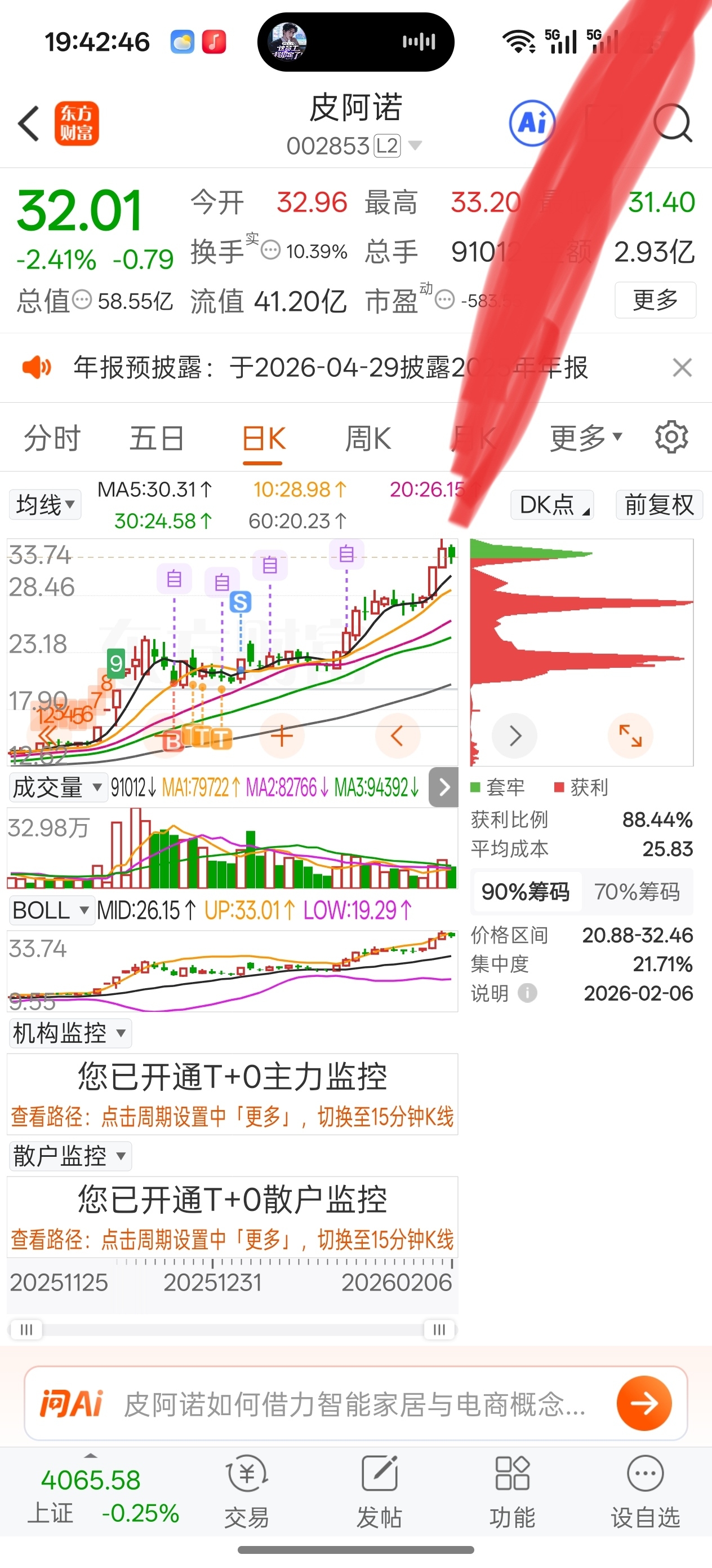 $皮阿诺(SZ002853)$ 周一这样走