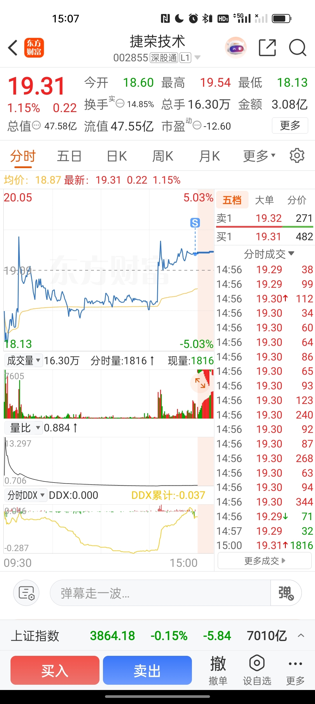 $捷荣技术(SZ002855)$ 嘻嘻,赚了就跑,格局不了一点