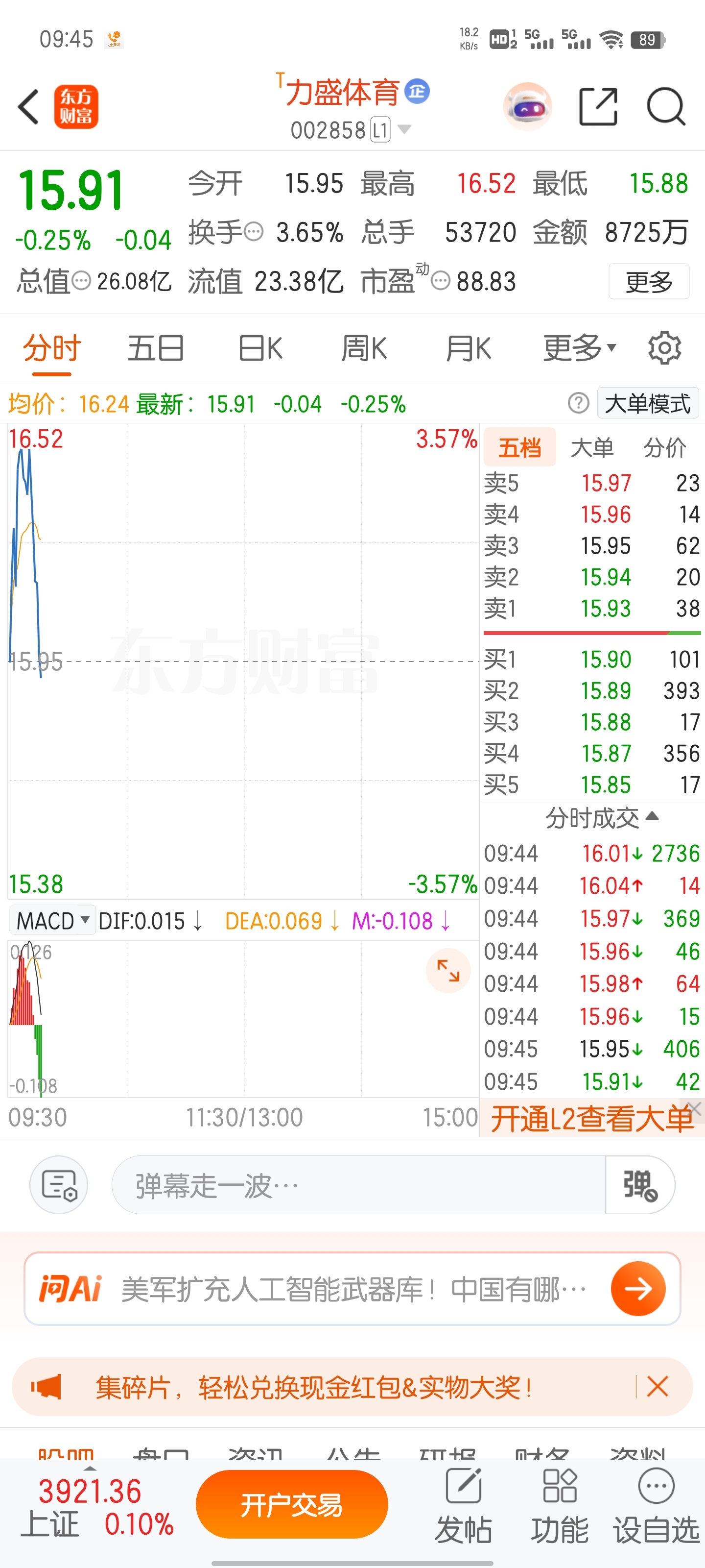 $力盛体育(SZ002858)$ 真牛逼啊!!居然翻绿了,全市最拉的主力。
