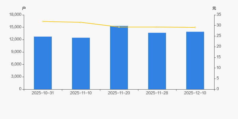 截至2025年12月10日,公司最新总股本为4.31亿股,其中流通股本为4.06亿股。户均持有流通股数量由上期的2.97万股下降至2.91万股,户均流通市值84.84万元。