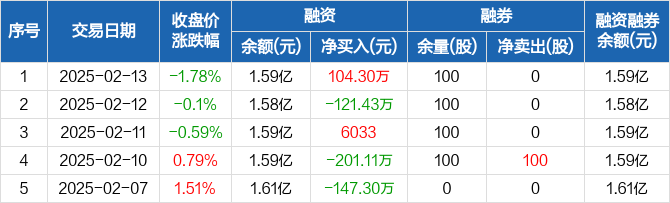 星帅尔:融资净买入104.3万元,融资余额1.59亿元(02-13)