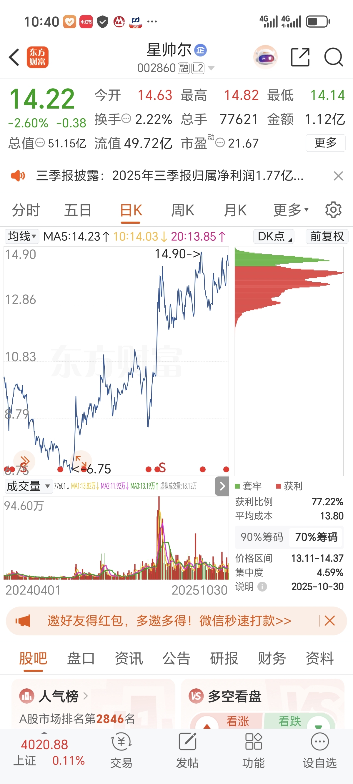 小作坊星帅尔25年表现不错,清仓玩弘讯科技