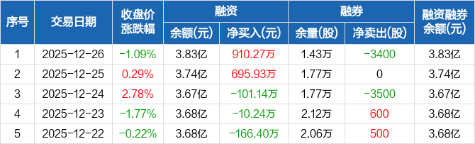 星帅尔:融资净买入910.27万元,融资余额3.83亿元(12-26)